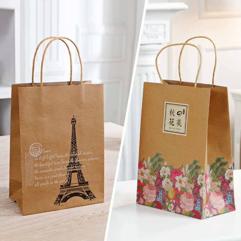 パリタワーレトロクラフト紙袋ギフトバッグ服手提げ袋kraft paper gift bag