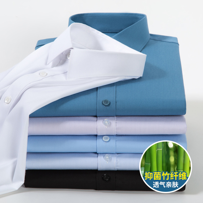 春秋三防シャツ男長袖ビジネス正装職業装竹繊維弾力無熱工装出勤シャツ