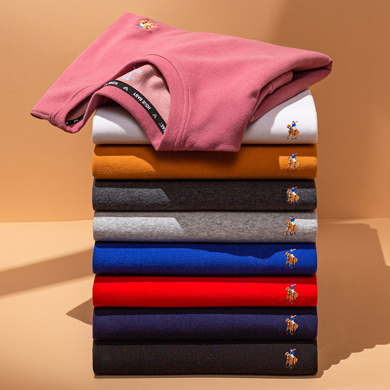 重いポンドの純綿のハイエンドのpoloシャツの男性の春秋の新型の長袖のtシャツは襟の純色の中年のお父さんが上着を詰めます。