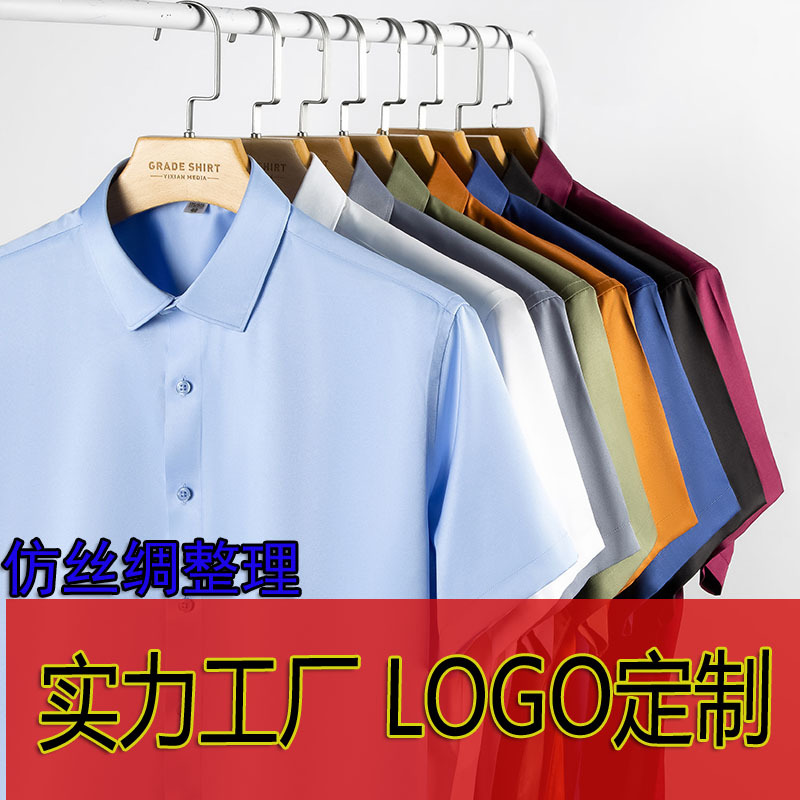 新商品竹繊維弾力無熱ビジネスカジュアル正装白半袖シャツ男春夏シャツ刺繍ロゴ