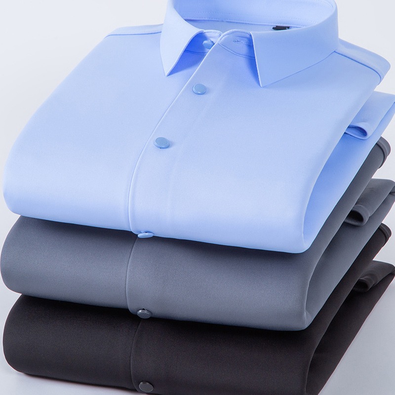 秋冬の新型無痕一体パイル男性ビジネス保温シャツにベルベットを厚くするのは弾力的なアイロンなしシャツのロットである