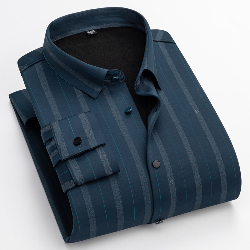 弾力ストライプ複合一体パイル保温シャツベルベット厚手縦縞英倫ビジネスカジュアルシャツ
