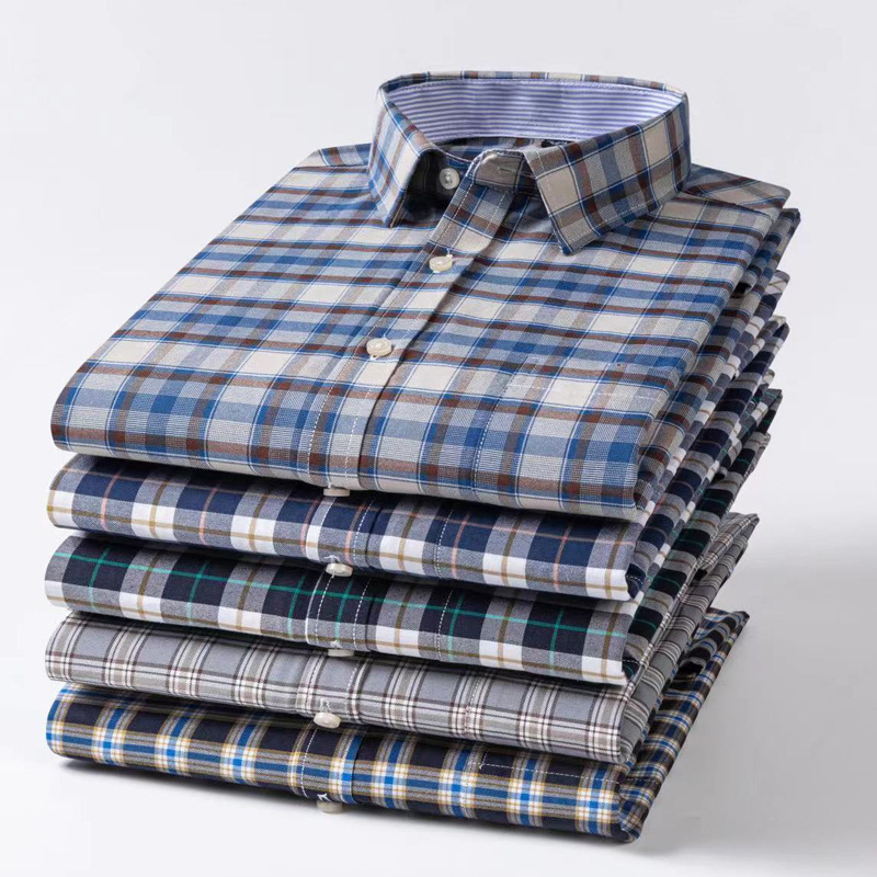【純綿】メンズ長袖格子シャツ男2023春新作毛磨き肌色織りカジュアルシャツ