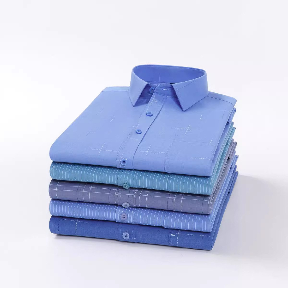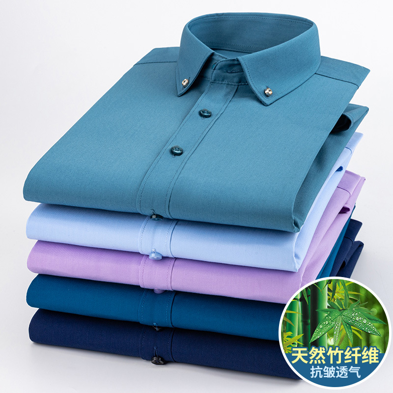 【大きいサイズのドリルは竹の繊維を掛けます】男性の四季の若い年の薄いタイプのカジュアルなボタンの襟の身を修めるタイプの純色の紳士服の卸売り