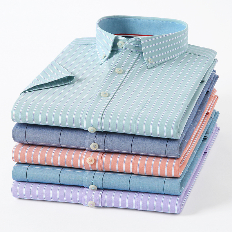2023新型男性オックスフォード織シャツ純綿夏半袖青年シャツ綿100% ポケットストライプ卸売り