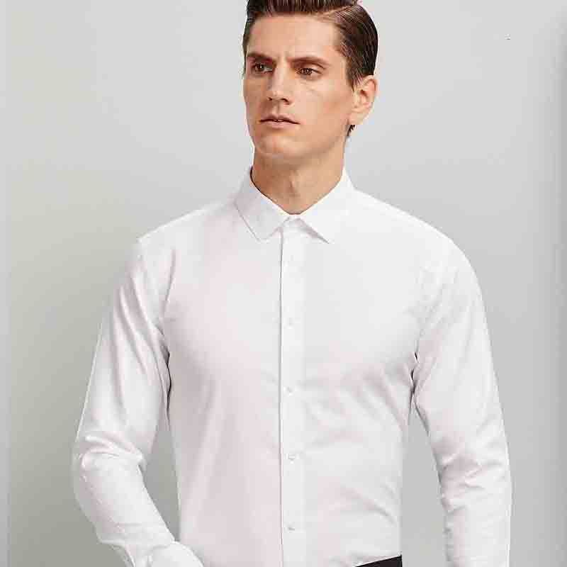 【液体アンモニア】純秋白色出勤修身型普通襟純色現物四季通用青年綿シャツ