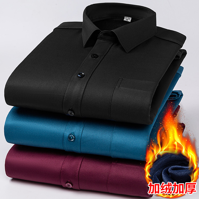 冬の職業工装男性ビジネスカジュアルベルベット保温シャツのしわに強い中高年シャツ