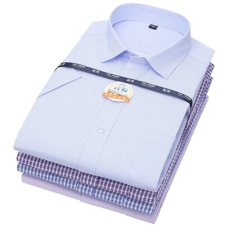 2023新型ビジネスカジュアル中高年男性修身シャツストライプ小方眼半袖シャツ卸売り代行