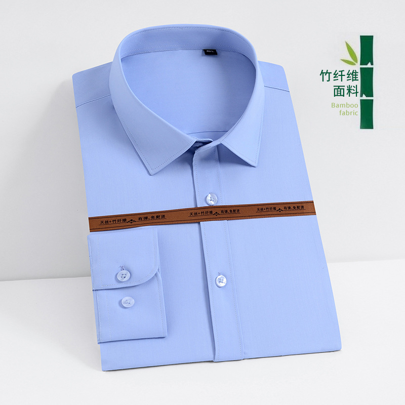 純色ビジネス男性長袖シャツ竹繊維通気性無熱修身正装シャツ卸売り代発加logo