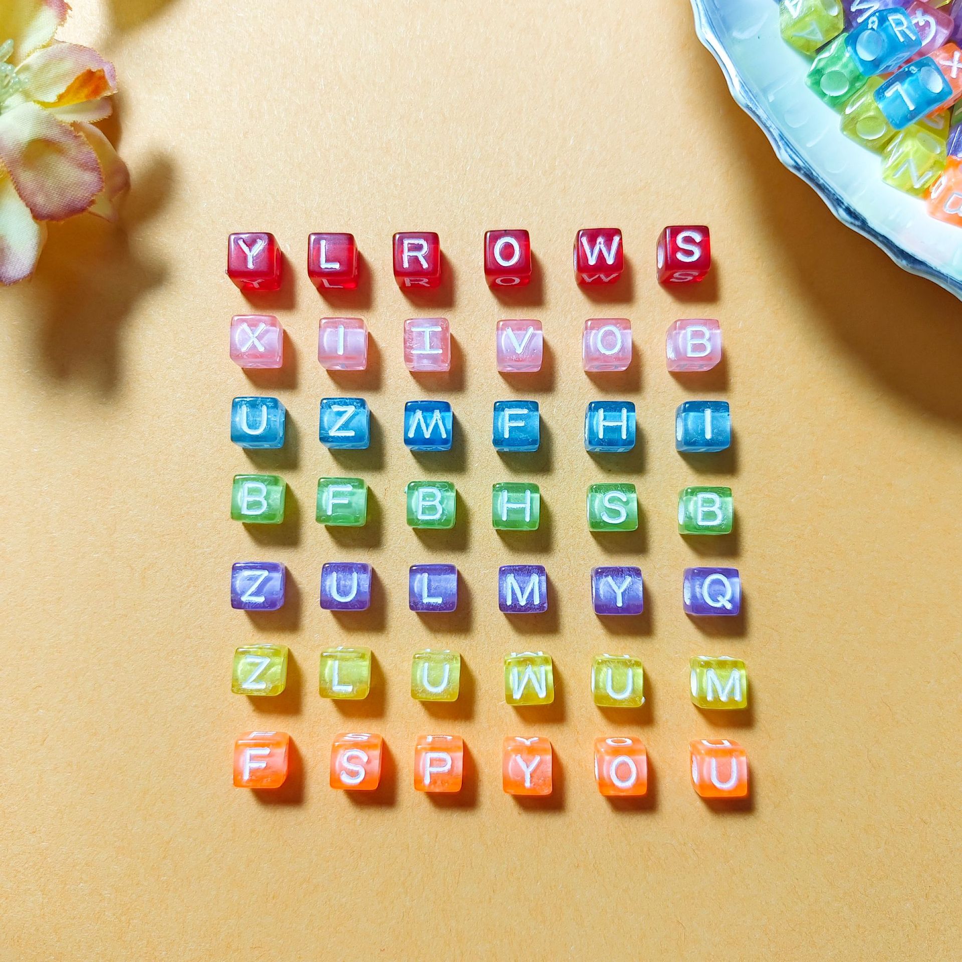 アクリルカラー英語アルファベットビーズ透明キャンディー色ビーズdiyアクセサリー6mm角型ブレスレットビーズ