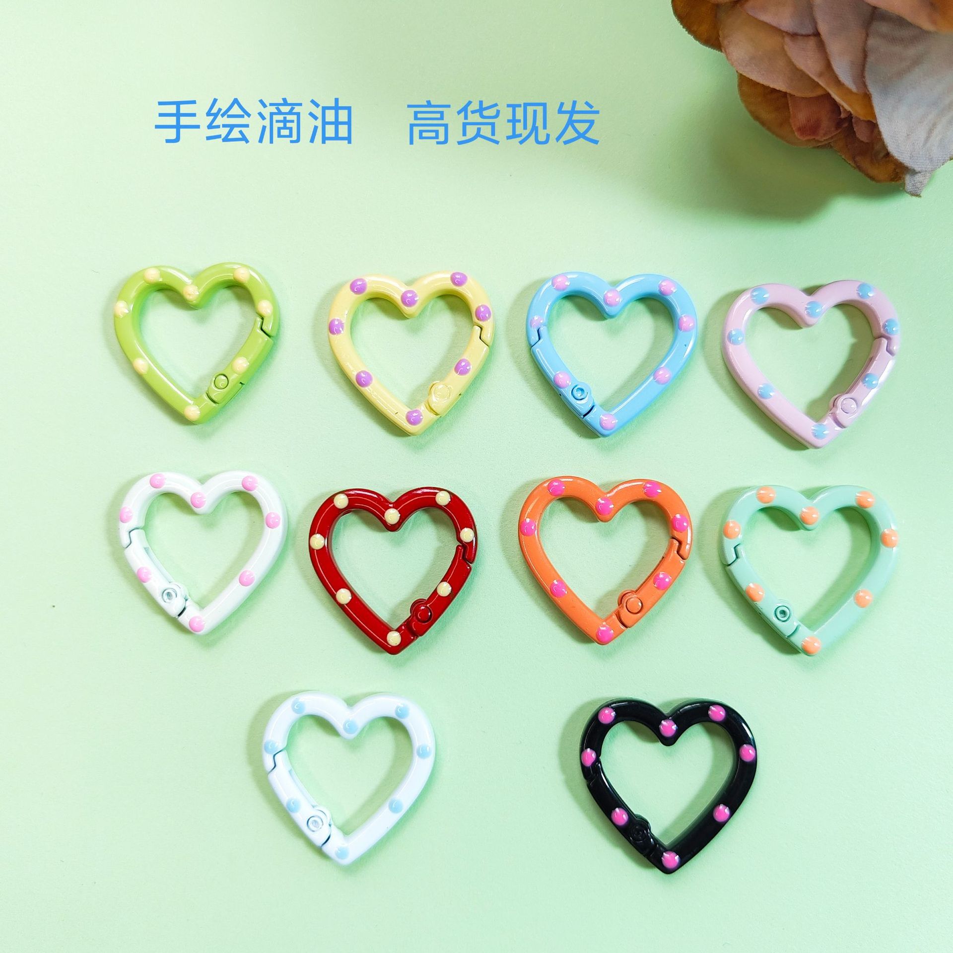 カラーの漆の愛のスプリングはdiyのキーを掛けてキャンディーの色の桃の心の扉を掛けてハート型のスプリングの輪のアクセサリの部品を掛けます。