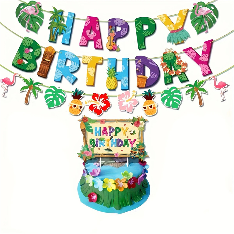 新しいハワイのパーティーの装飾フラミンゴカメの葉誕生日フラグフラワーケーキフラグ装飾用品