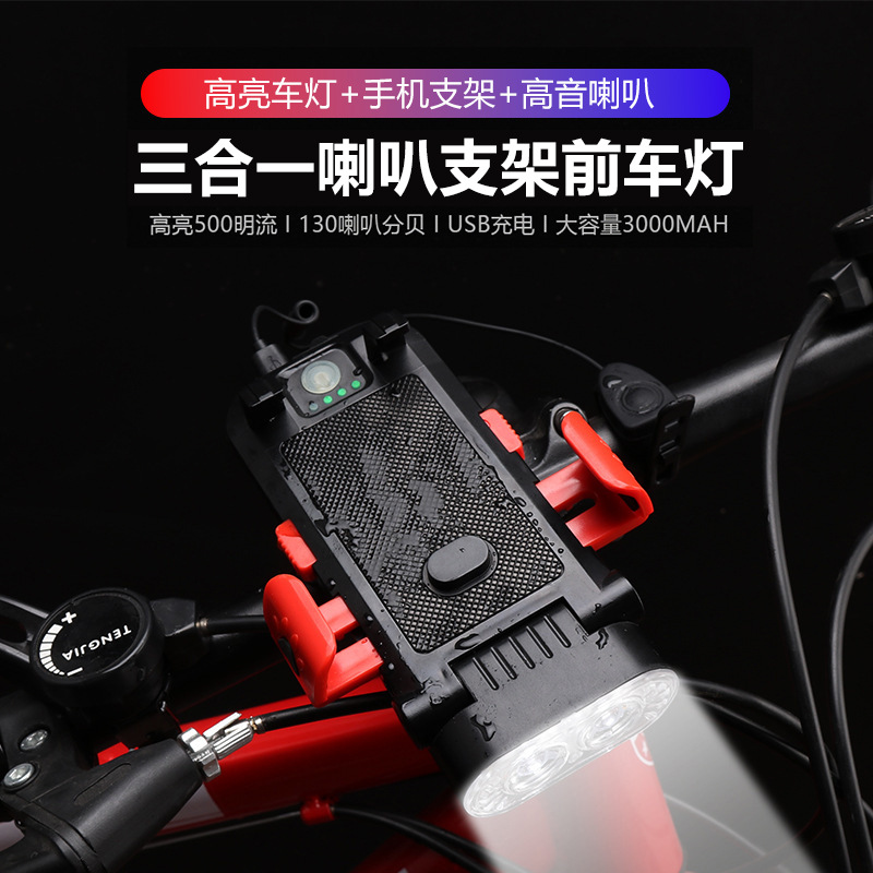 国境を越えた自転車ライト四合一携帯電話スタンド付き充電宝山地自転車ヘッドライトスタンド付き自転車装備