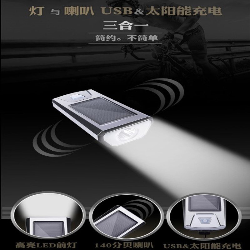 ソーラー自転車ライトマウンテンバイクスピーカーライト高デシベルusb充電ヘッドライト