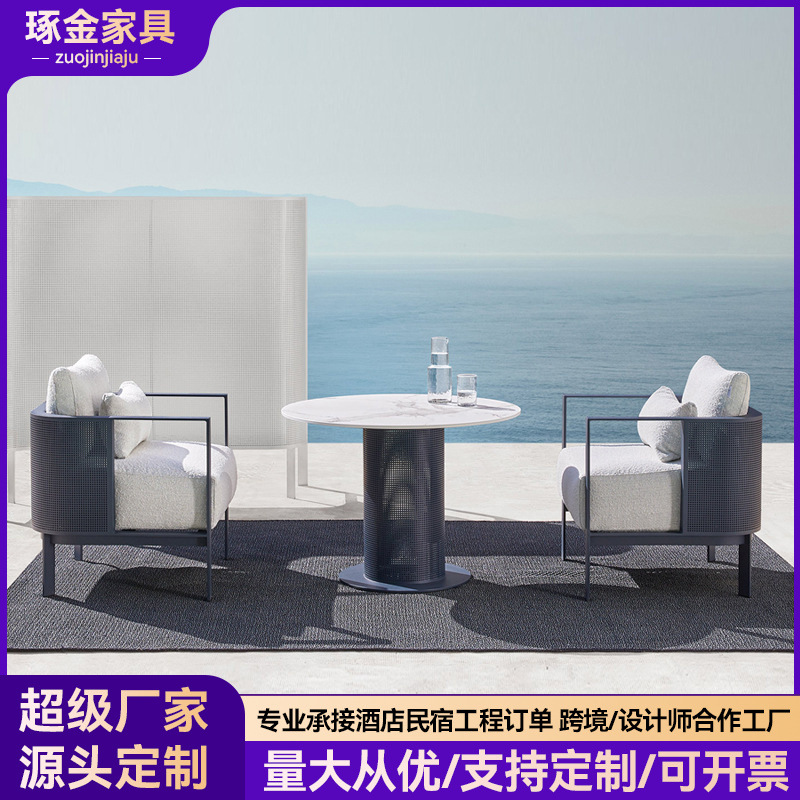 ステンレス屋外ソファー防雨日焼け止め庭露天屋外ベランダレジャー家具ティーセット藤編み椅子