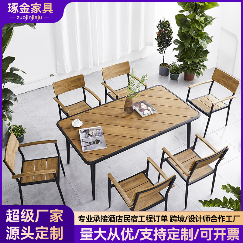 北欧の屋外のレジャーの喫茶店は木のテーブルと椅子の室外の花園の庭の乳の喫茶店の外でテーブルと椅子の組み合わせの家具を並べます。