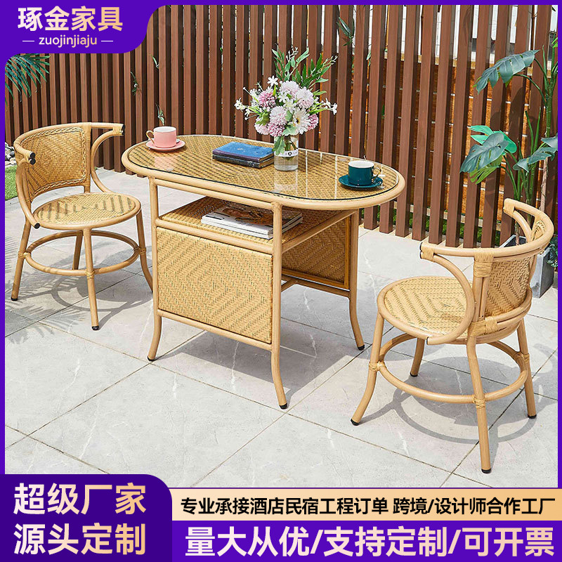 屋外テーブルと椅子北欧庭籐編みソファリビングバルコニー小さなガーデンレジャー室三点セット組み合わせ家具
