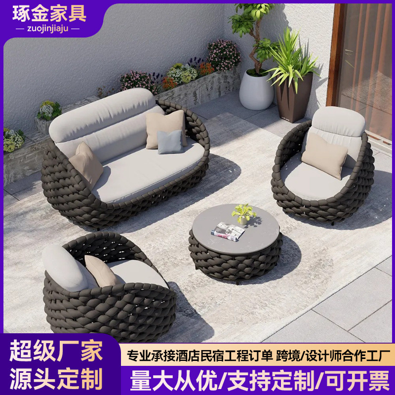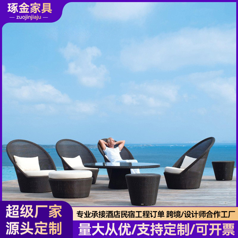 北欧アウトドア籐編みソファシングル籐椅子クリエイティブアウトドア家具ベランダホテル別荘モデルハウス庭