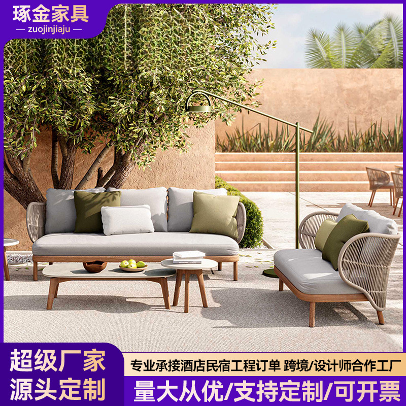 屋外籐編み庭ソファリビングルームカジュアル籐椅子ホテル別荘ガーデンサンルームお茶テーブルテラス家具