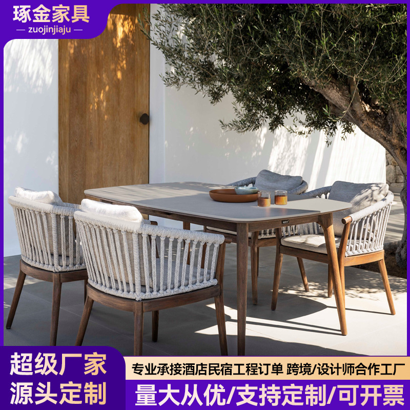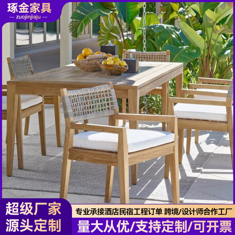 北欧寂風実木柚木長食卓家庭用長方形テーブル屋外庭園食卓別荘防腐木