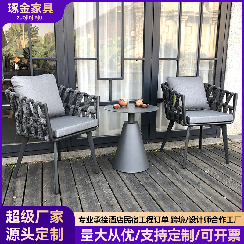 屋外ベランダのテーブルと椅子のモデル家具のシンプルな3つのセットの小さなお茶の庭の屋外のテーブルと椅子の組み合わせ