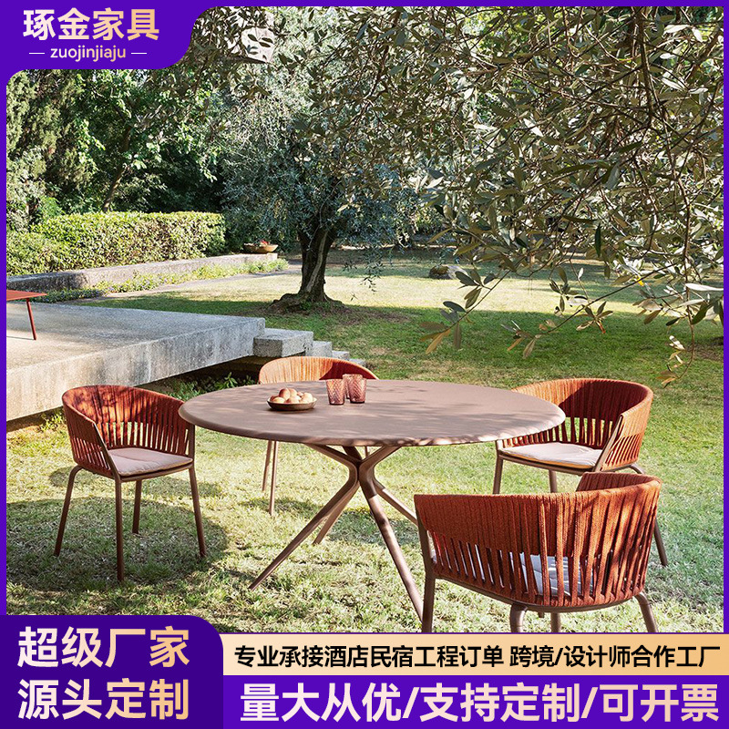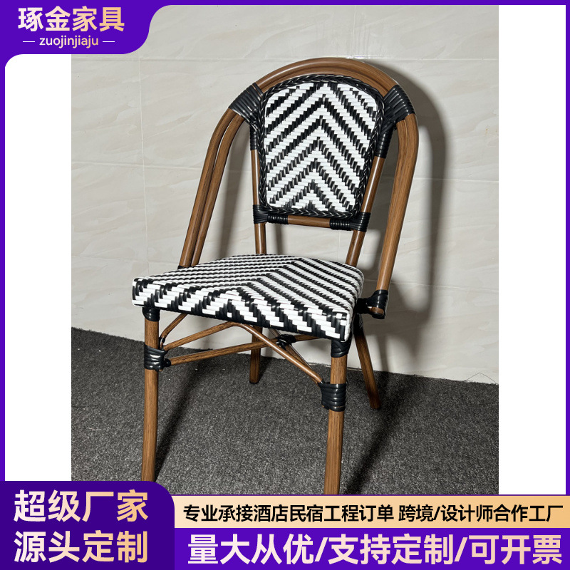 屋外籐椅子シングルカジュアルダイニングチェアレトロフレンチインテリア籐编みホテルカフェ屋外ネット赤テーブル椅子