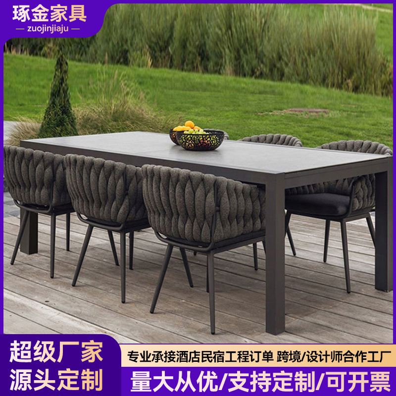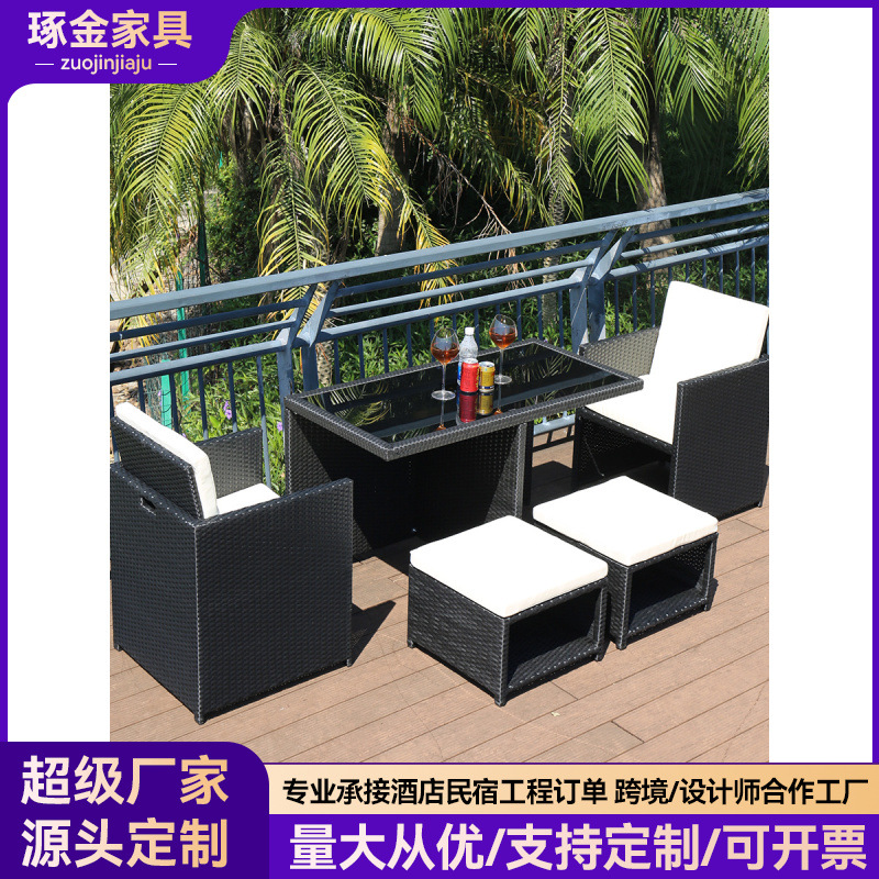 戸外藤編みテーブル椅子レジャー藤椅子高脚バー椅子屋外庭園ベランダテーブル椅子6人8人テーブル長テーブル