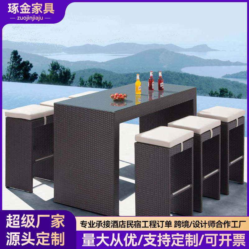屋外バー椅子デザイナー露店民宿ホテル高足椅子屋外藤編みテーブルと椅子組み合わせ庭園バー椅子