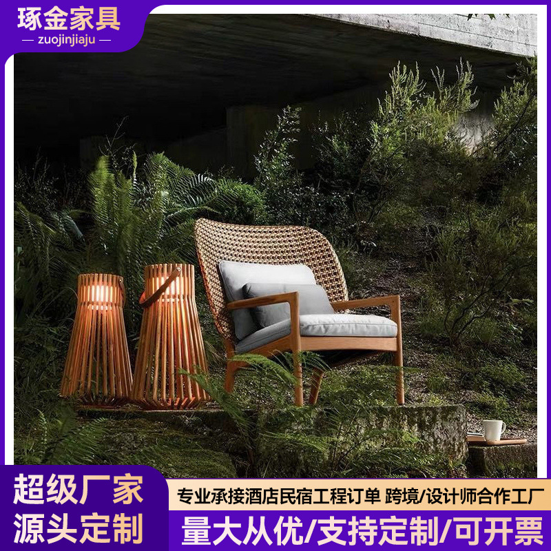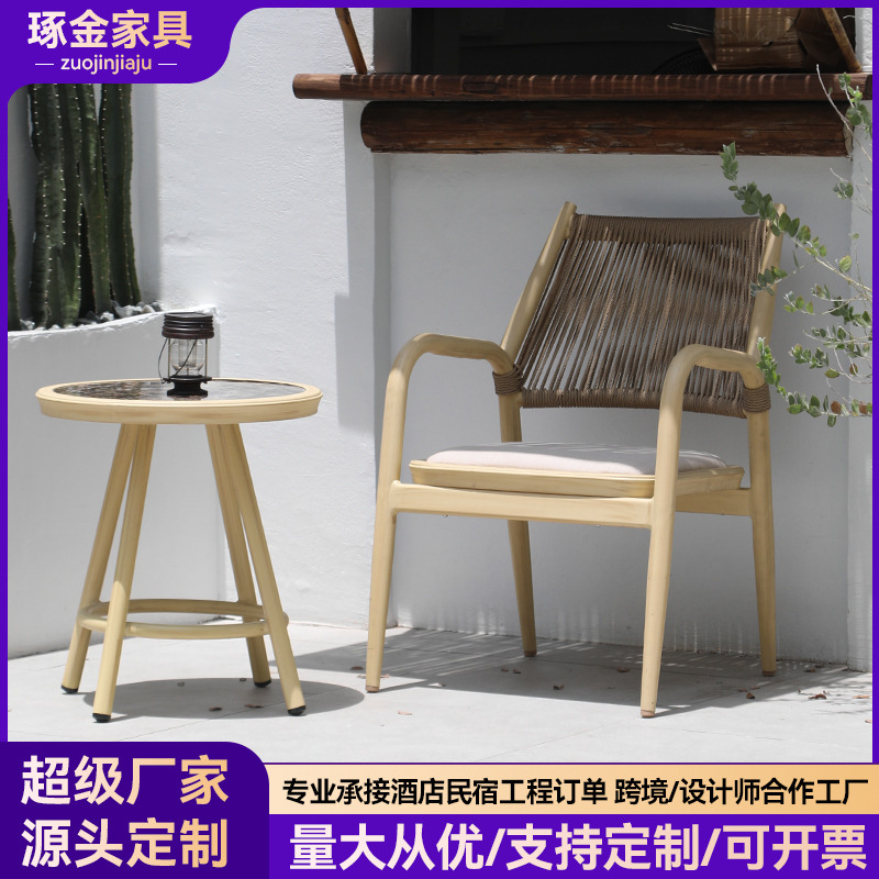 戸外実木ソファーレジャー屋外ロッキングチェア民宿藤編み椅子組み合わせ庭園東南アジアホテルバルコニー家具