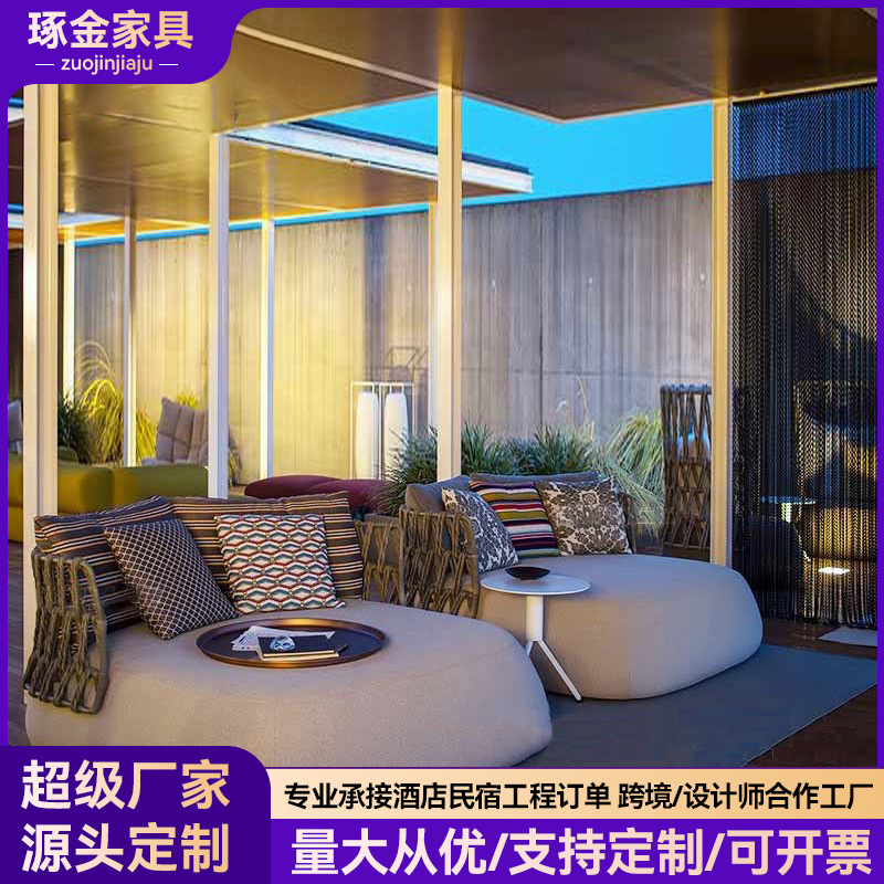 北欧屋外籐編みソファ二人掛けモデルルームホテル屋外レジャーデザイナー籐椅子庭アーチソファー