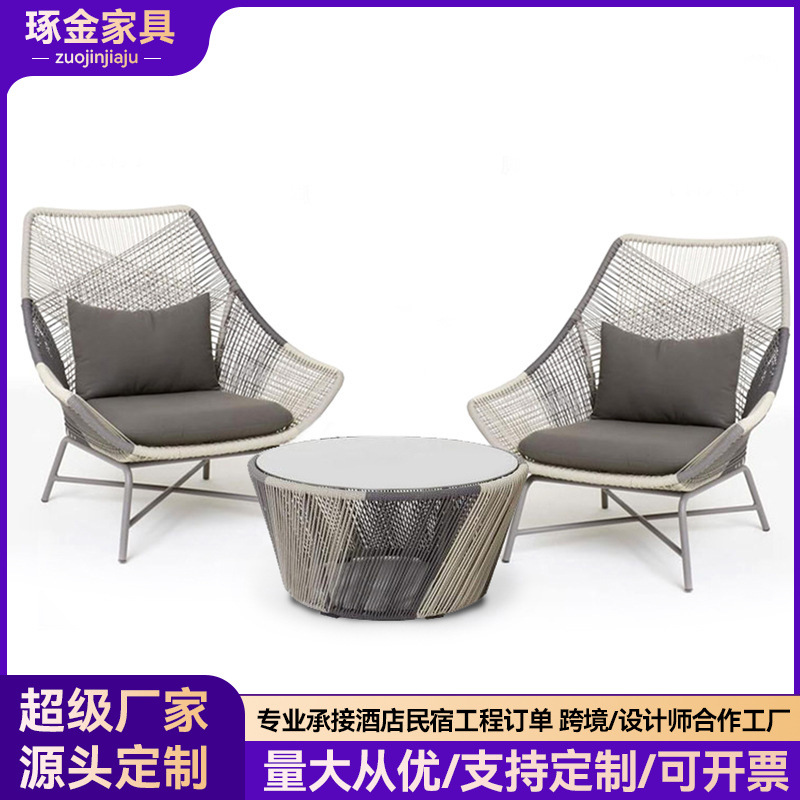 北欧アウトドア籐編み庭ソファチェアセット別荘バルコニー屋外デザイナーソファネット赤クリエイティブソファ