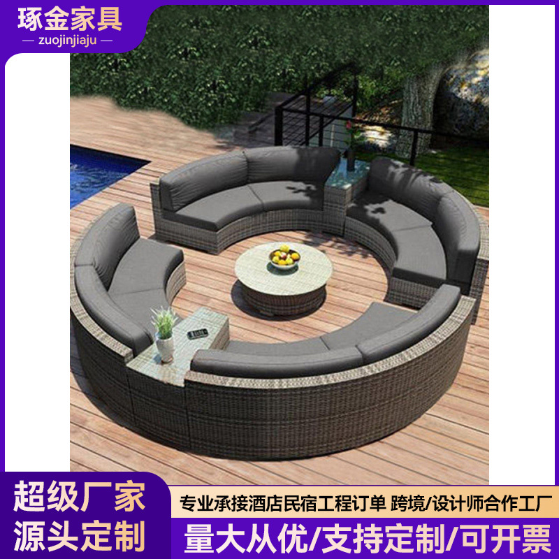 屋外円形籐ソファコンビネーションガーデン庭半円形籐椅子ソファ屋外ホテルアーチ形リビングソファ