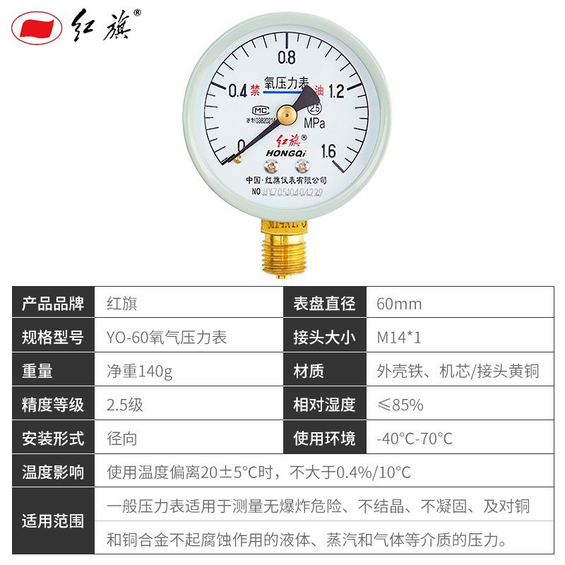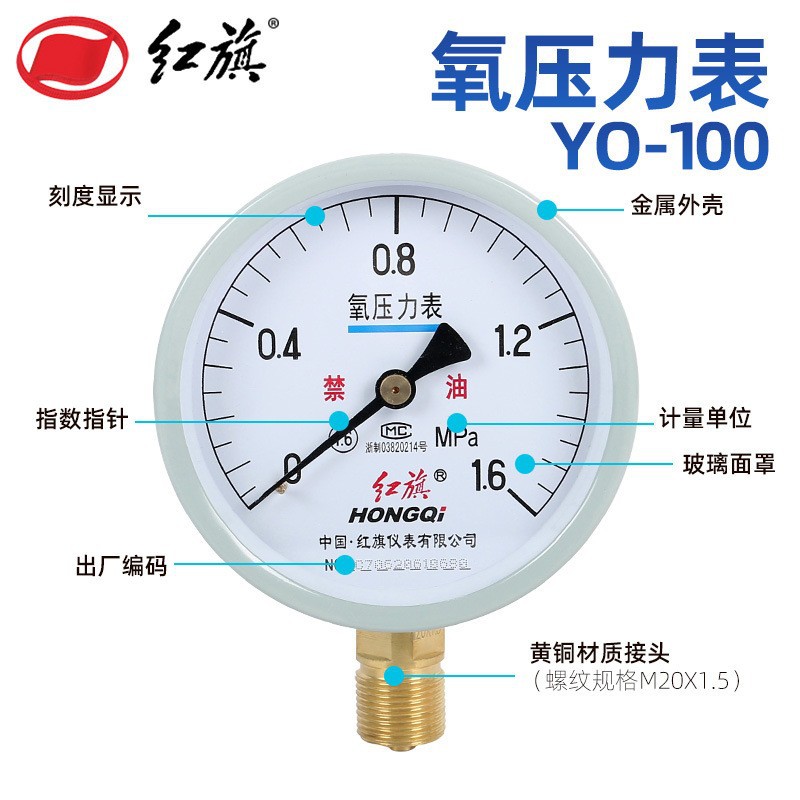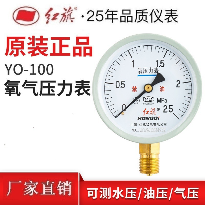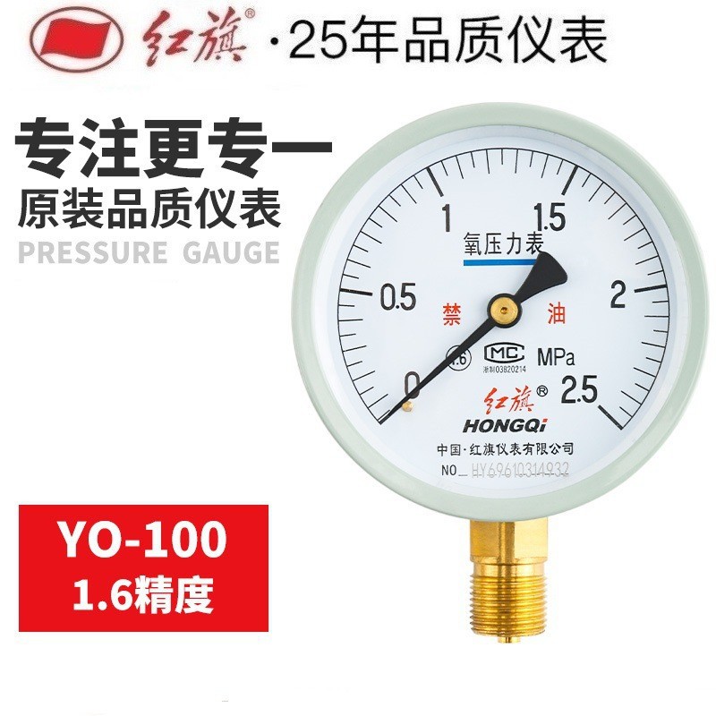 紅旗酸素計ラジアル酸素圧力計オイル禁止圧力計YO-100高精度2.5級酸素圧力計