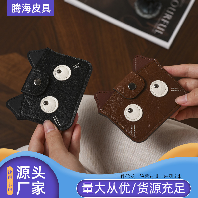 新しい質感のレトロな漫画猫カードホルダー、小さくて薄い、大容量、本物のソフトレザーのカードホルダー、銀行カード、小銭入れ