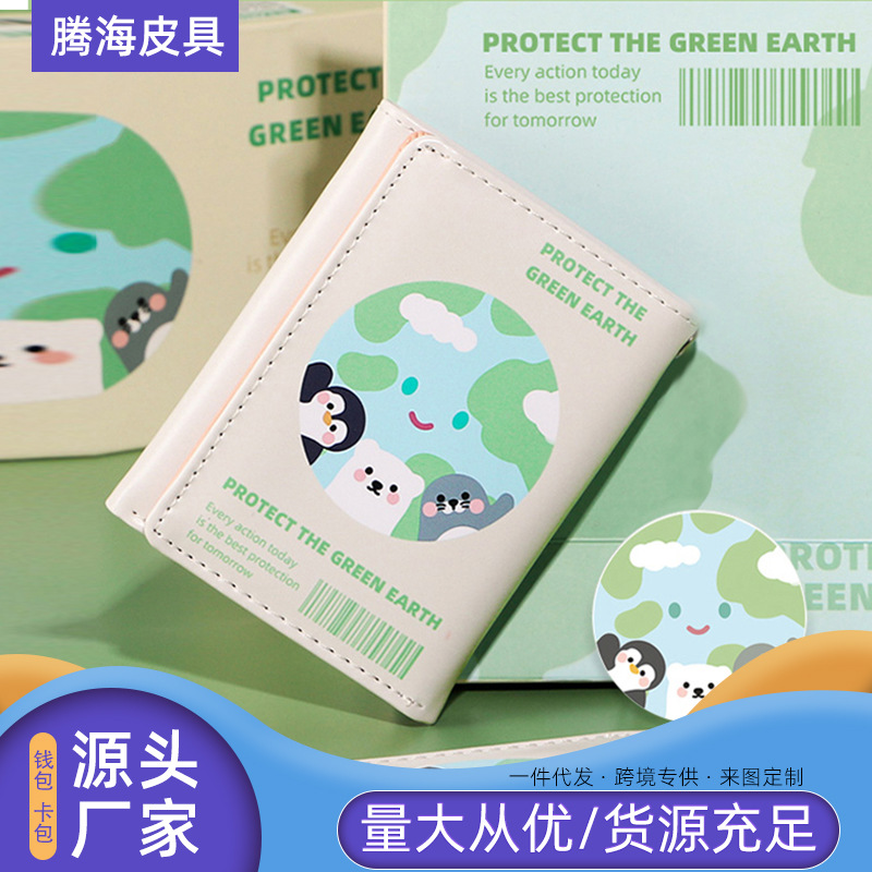 メーカー卸売り環境保護地球ショート財布2023新型カードバッグ学生かわいいオリジナル三つ折り小銭入れ