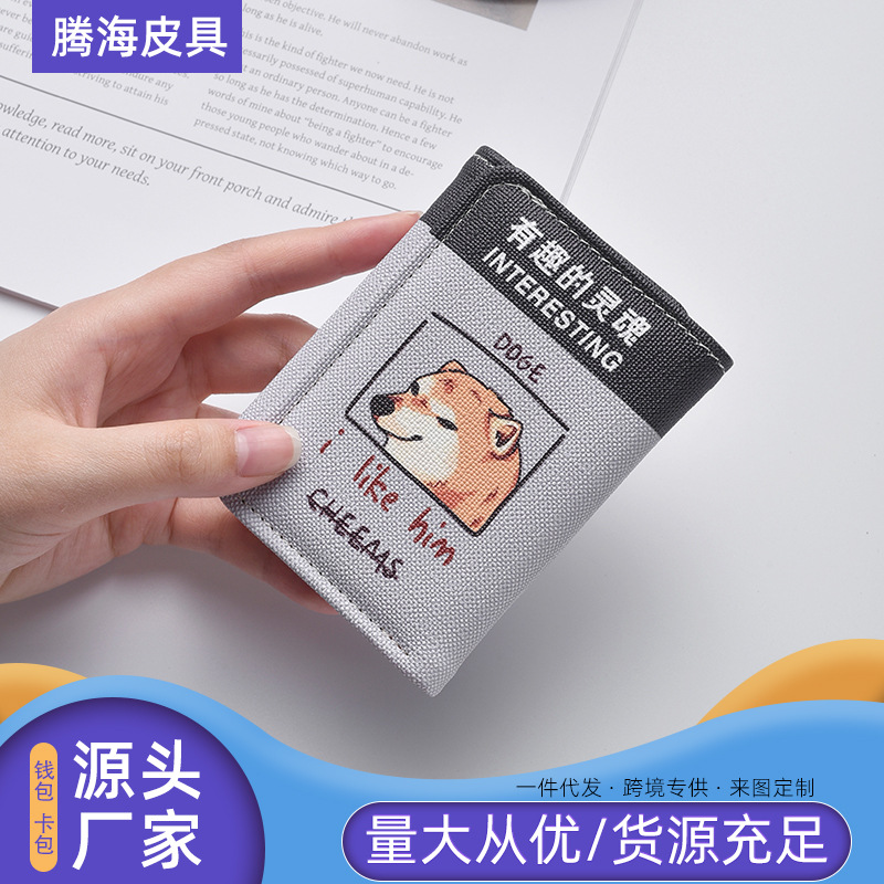 柴犬小銭入れキャンバス学生男性と女性かわいいミニ漫画日本ニッチデザイン三つ折り折りたたみ小さな財布