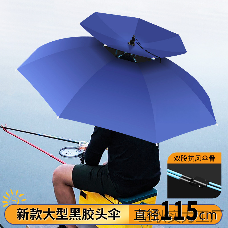 二重層防雨釣り傘キャップヘッドマウント傘折りたたみオーバーヘッド傘キャップ屋外サンシェード釣りポータブル日焼け止め