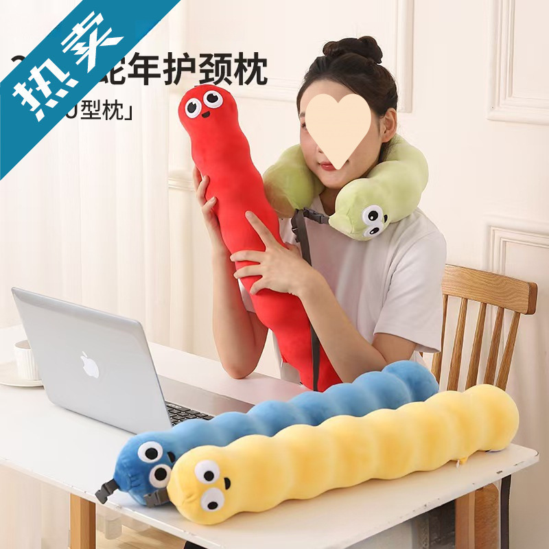 スネーク U 字型枕かわいい漫画の首枕首枕形昼寝枕毛虫は飛行機や高速鉄道を収納できます