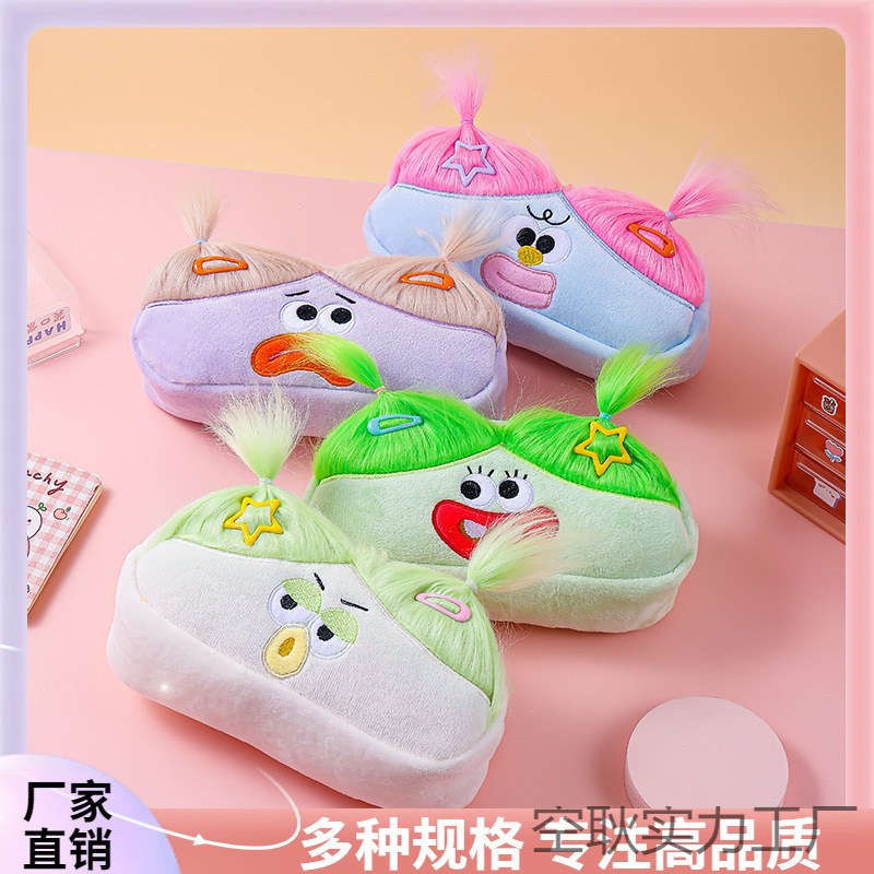 ファジーウーリー人形ぬいぐるみペンケース大きな目奇妙な甘い女の子のハート収納袋ぬいぐるみ文具