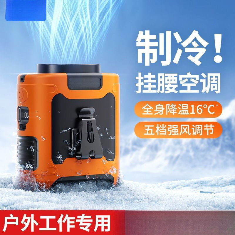 腰掛け扇風機、屋外工事現場キャンプ専用、強風ポータブル小型モバイル充電式扇風機