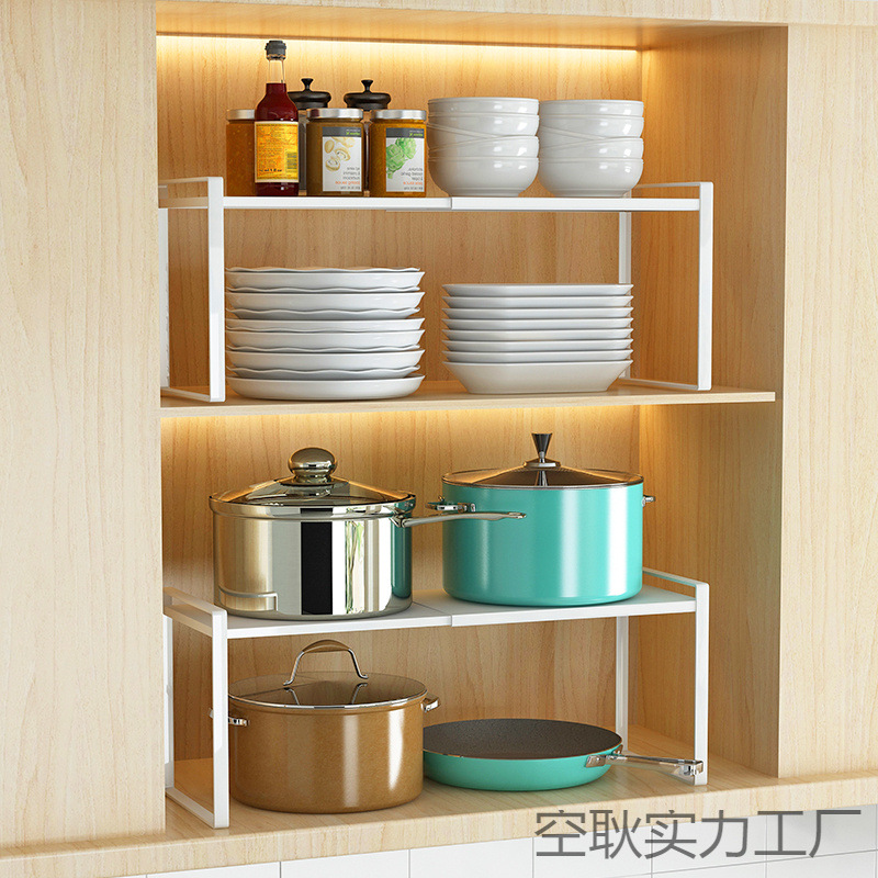 伸縮式キッチン収納ラックカウンタートップキャビネットパーティション層状ラックキャビネットスパイス収納ラックポットラックShenheng