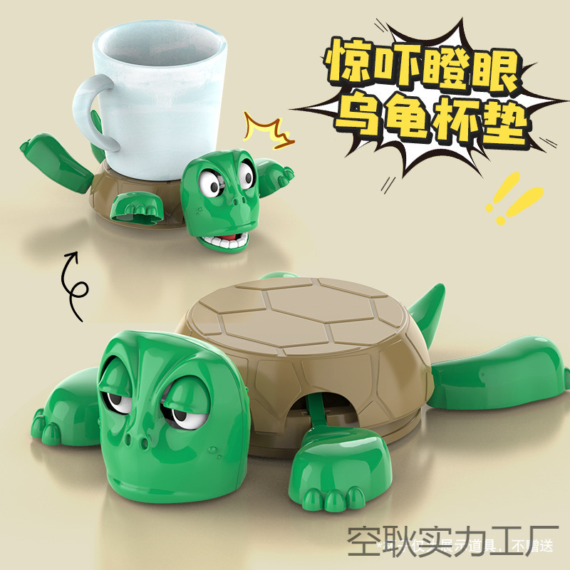 面白いカメコースター、プレスカメコースター、誰がカメを押したのか、目を丸くしたカメ、クリエイティブで面白い、楽しいデスクトップ装飾品