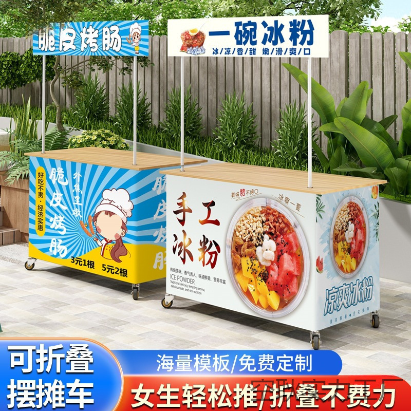 車輪付き折りたたみテーブル、ダイニングカート、特別な氷粉屋台、屋台、ナイトマーケットバーベキューソーセージスナック