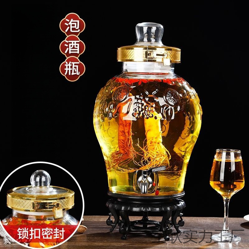 ガラスワインボトル 5kg 10kg 鉛フリー高麗人参薬用ワインボトル蛇口付き密封ワインボトル