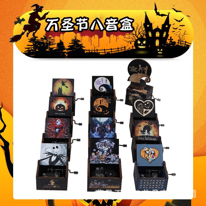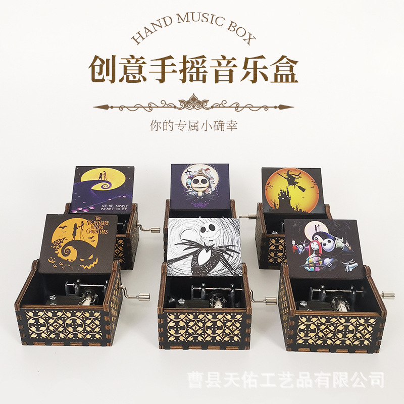 現品新品ハロウィーン古典彫刻オルゴール木製手回しオルゴール色絵クリスマスの夜オルゴール