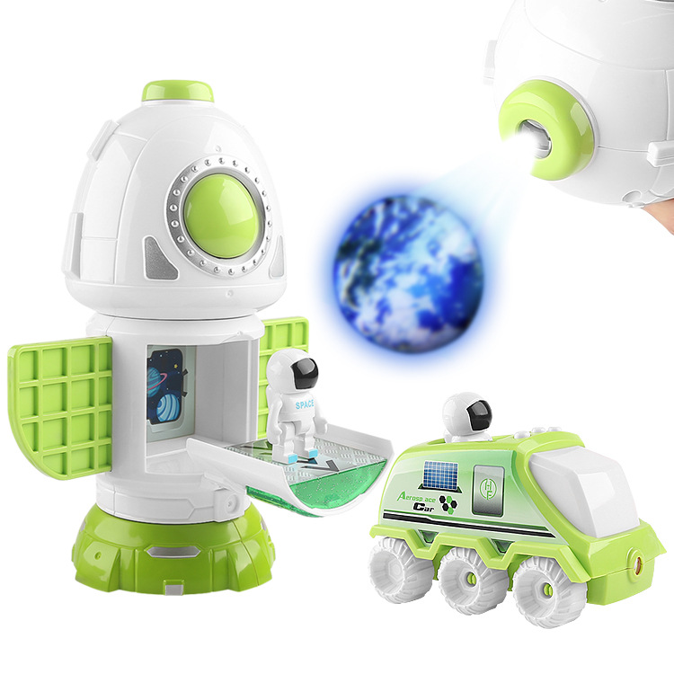 クロスボーダーロケットスペースシャトルスプレー投影宇宙船モデル照明音楽玩具セット月球車