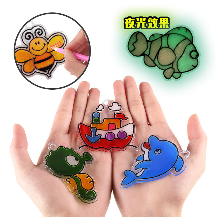 子供のテープ画diy手作りテープ画3d無焼き塗装水晶カラーテープ画玩具18pcs模様