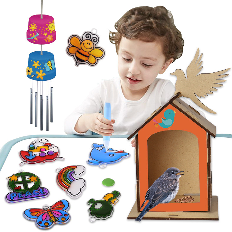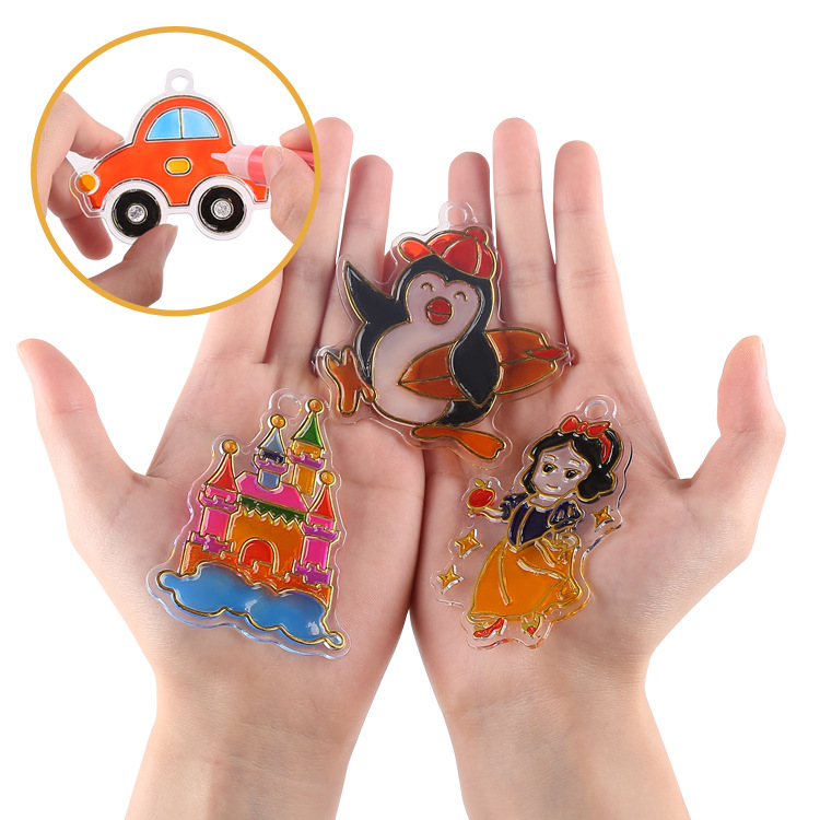 子供3d立体diy手作り無焼き塗装水晶カラー窓立体フィルム玩具24pcs模様