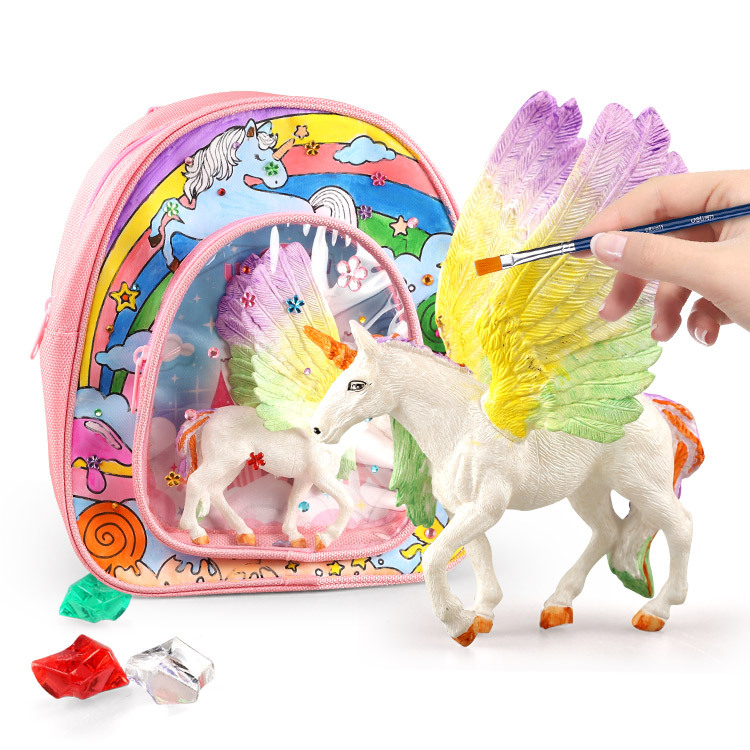 子供の手作りdiy益智落書き彩色バックパックユニコーン飛馬少女カバン彩色絵画益智玩具