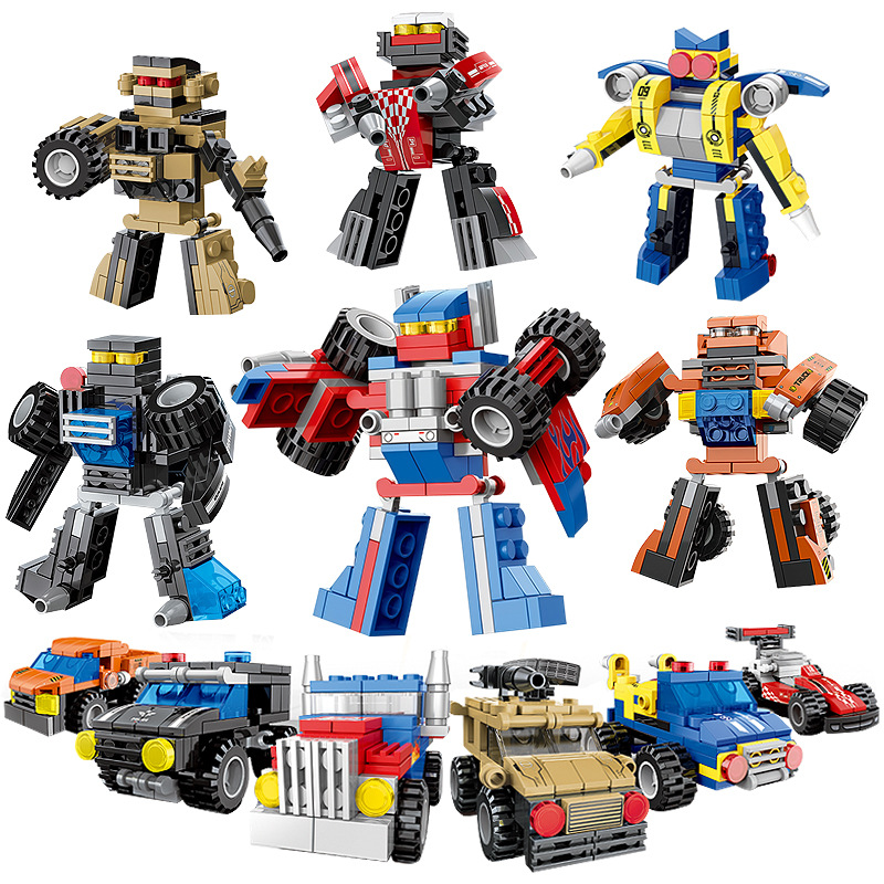小さな粒子メカロボット世界ビルディングブロック組み立て 6-in-1 教育パズルおもちゃレーシングカービルディングブロックおもちゃ